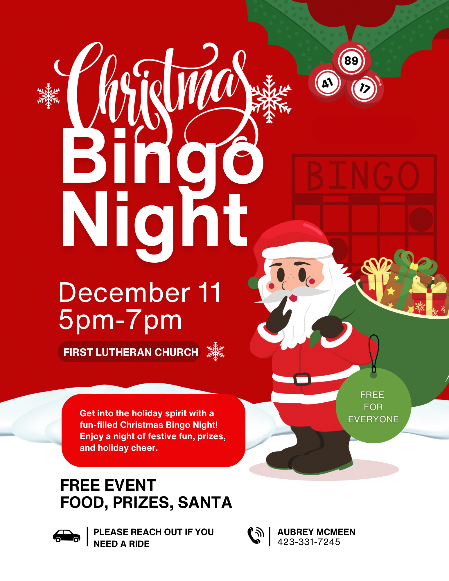 Join us for Christmas caroling at First Apartments! We will meet at First Lutheran’s carport entrance at 5:45pm, then walk across the parking lot to the First Apartments.